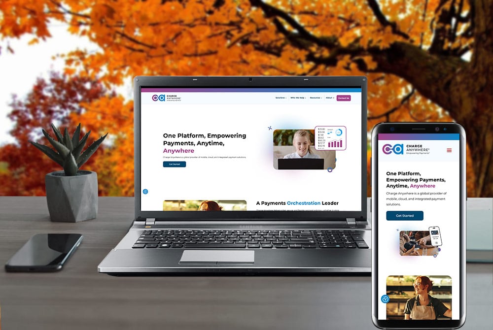 Overall, the design effectively communicates Charge Anywhere’s value proposition – secure, scalable payment solutions that adapt to modern business demands.